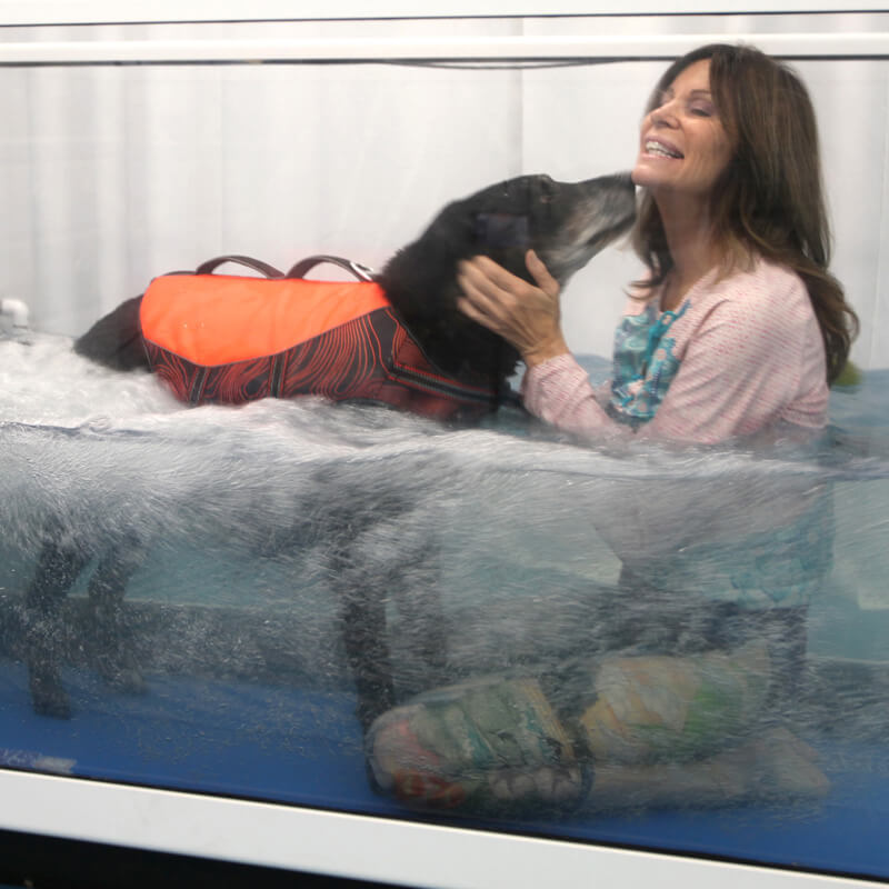 Customizing the session to your dog’s needs involves adjusting the duration, water level, treadmill speed, and overall activity. Hydrotherapy utilizes water resistance for a low-impact, joint-friendly exercise. For dogs who need to relax, “Float Therapy” is designed to relax both mind and body. It is advantageous for dogs in need of relaxation and/or mood elevation. This session, involves gentle swaying movements and canine massage therapy in warm water, providing relief for senior dogs, those who suffer from stress or loneliness. Float Therapy is also be a nice way to pamper your pup.